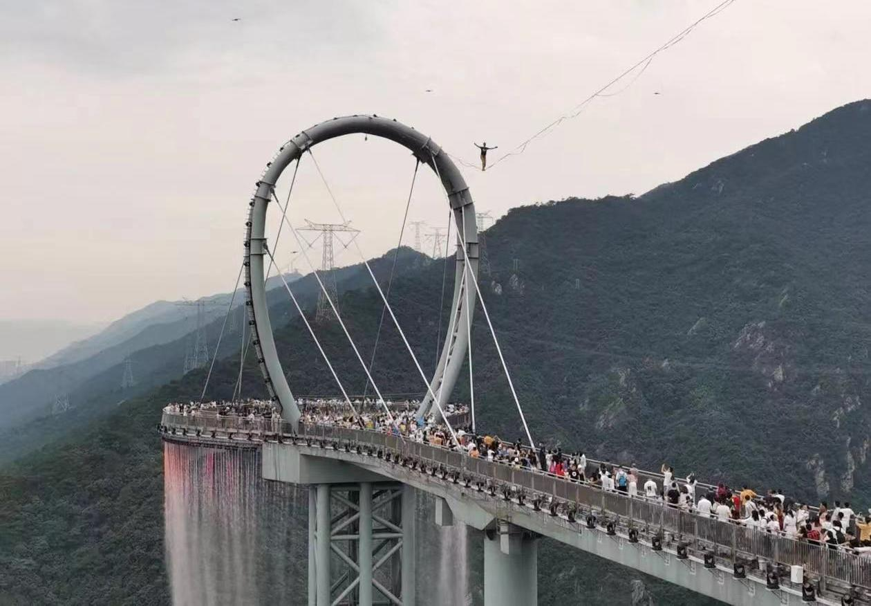 该项目结合了国内外扁带运动发展,上下双重保护,200%的安全设计理念,安全有趣且有挑战性,深受青少年和年轻群体喜爱,在”体 育+旅游”模式创造了超二十亿流量。