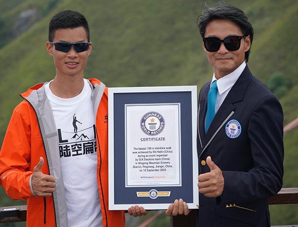 2023年9月,团队创始人施海林在国家5A级景区-户外天堂武功山,进行高空扁带吉尼斯纪录挑战,成功创造了100米最快吉尼斯世界纪录,不但成为中国首个高空扁带吉尼斯世界纪录保持者,也做到了中国的速度成为世界的速度。